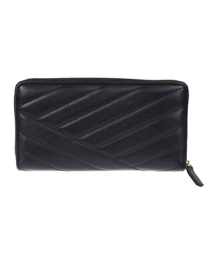 Стеганый кожаный кошелек на молнии Tory Burch, черный