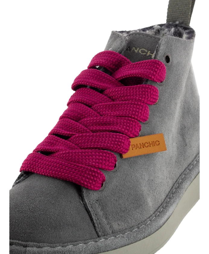 Пополните свою коллекцию кроссовок этими стильными серыми кроссовками от Panchic с элегантным замшевым верхом и широкими плетеными шнурками цвета фуксии, которые добавят яркий акцент. Ключевые особенности: Серый | Фуксия | Замша | Съемная стелька | Внутренние эластичные резинки | Шнуровка на 8 отверстий | Логотип цвета оружейной стали, нанесенный методом термотиснения | Размер и посадка: Стандартная | Состав и уход: 100% кожа | Протирать влажной тканью