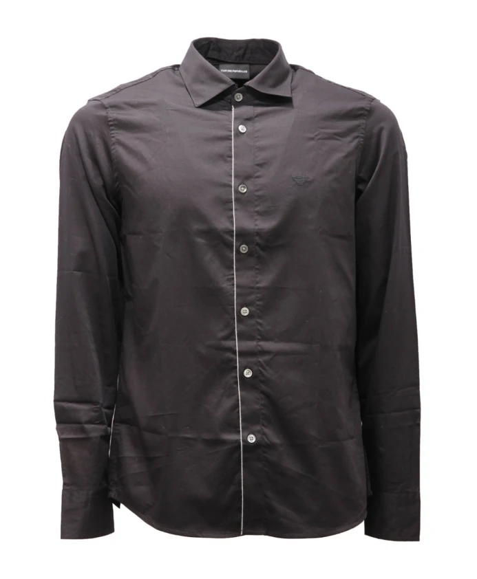 Хлопковая рубашка со съемным воротником Armani, черный