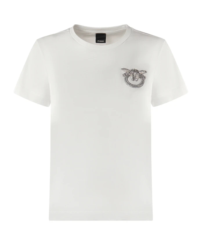 Футболка PINKO Nambrone сочетает в себе классический силуэт с круглым вырезом и вышитый логотип на груди, создавая изысканный повседневный образ. Она преображает базовую вещь благодаря нежной отделке стразами и жемчугом. Ключевые особенности: Белый | Хлопок | Круглый вырез | Короткие рукава | Вышитый логотип на груди | Отделка стразами и жемчугом | Прямой низ | Размеры и посадка: Стандартный крой | Размер на фото: XS | Состав ткани и уход: 100% хлопок