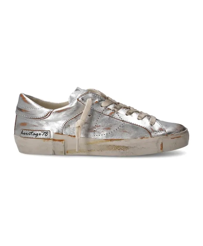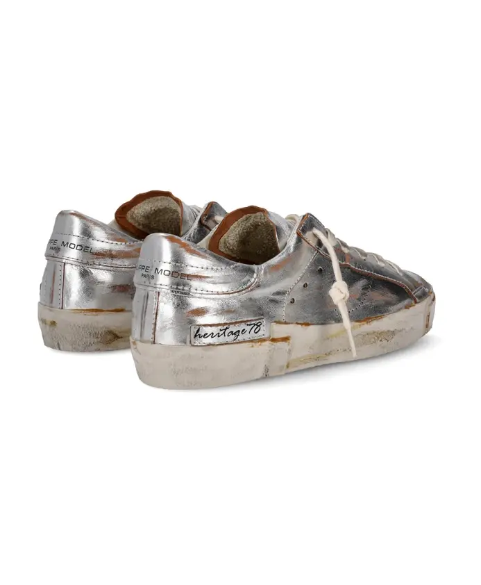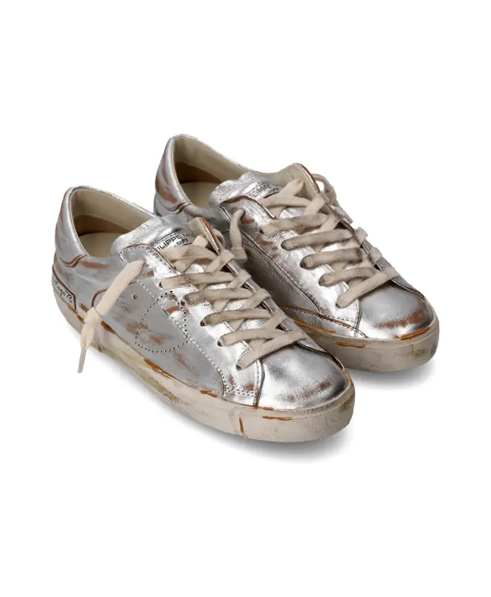 Теннисные кроссовки Prsx от Филиппа Моделя сочетают в себе стиль и комфорт благодаря ламинированной козьей коже и уникальному эффекту потертости. Идеально подходящие для повседневных прогулок, эти кроссовки предлагают сочетание моды и функциональности. Ключевые особенности: Серебристый | Серый | Ламинированная козья кожа | Дышащая подкладка | Съемная мягкая стелька | Эффект потертости | Подошва ручной работы | Фрезерованная подошва | Резиновая подошва