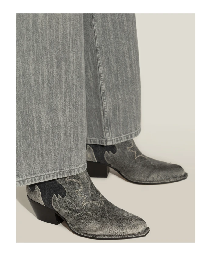 Представляем ботильоны на каблуке от Vic Matière - идеальное сочетание классического ковбойского стиля и современной элегантности. Эти ботильоны украшены уникальным узором в виде листьев, который придает им неповторимый вестерн-шарм. Ключевые особенности: Серый | Кожа | Петли для удобного надевания и снимания | Узор в виде листьев | Закругленный носок | Эффект потертости | Размер и посадка: Стандартная | Состав и уход: Кожа | Протирать влажной тканью