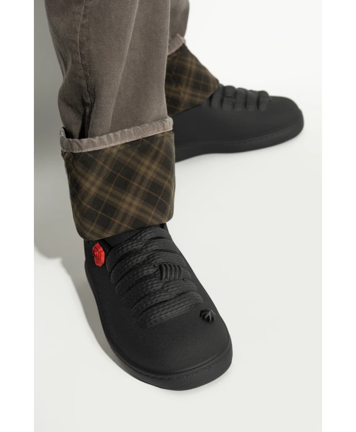 Откройте для себя исключительную элегантность и функциональность кроссовок Bubble из эксклюзивной коллекции Burberry. Изготовленные из высококачественной резины, эти кроссовки излучают современный минималистичный стиль, который идеально дополняет их универсальность. Ключевые особенности: Черный | Резина | Конструкция без шнурков | Низкий профиль | Закругленный носок | Красная деталь в форме розы | Размер и посадка: Низкие | Состав и уход: 100% резина