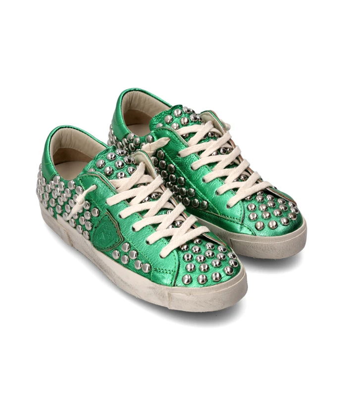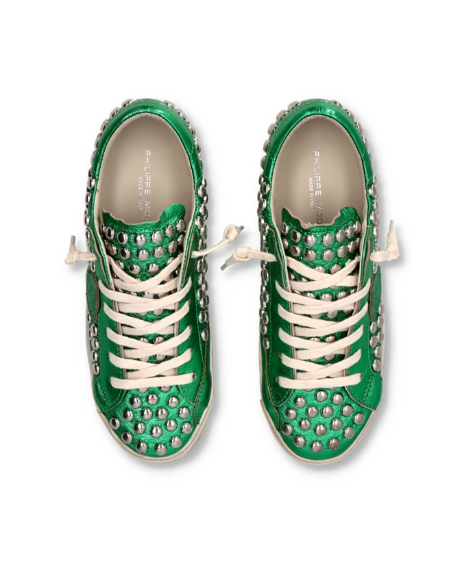 Кроссовки Prsx от Филиппа Моделя сочетают в себе стиль и комфорт благодаря уникальному дизайну из ламинированной телячьей кожи и закругленным шипам. Идеальные для повседневной носки, эти кроссовки предлагают оригинальный внешний вид и практичные характеристики. Ключевые особенности: Зеленый цвет | ламинированная телячья кожа | дышащая ткань | съемная мягкая стелька | закругленные шипы | подошва ручной работы с метками | Размер и посадка: стандартная