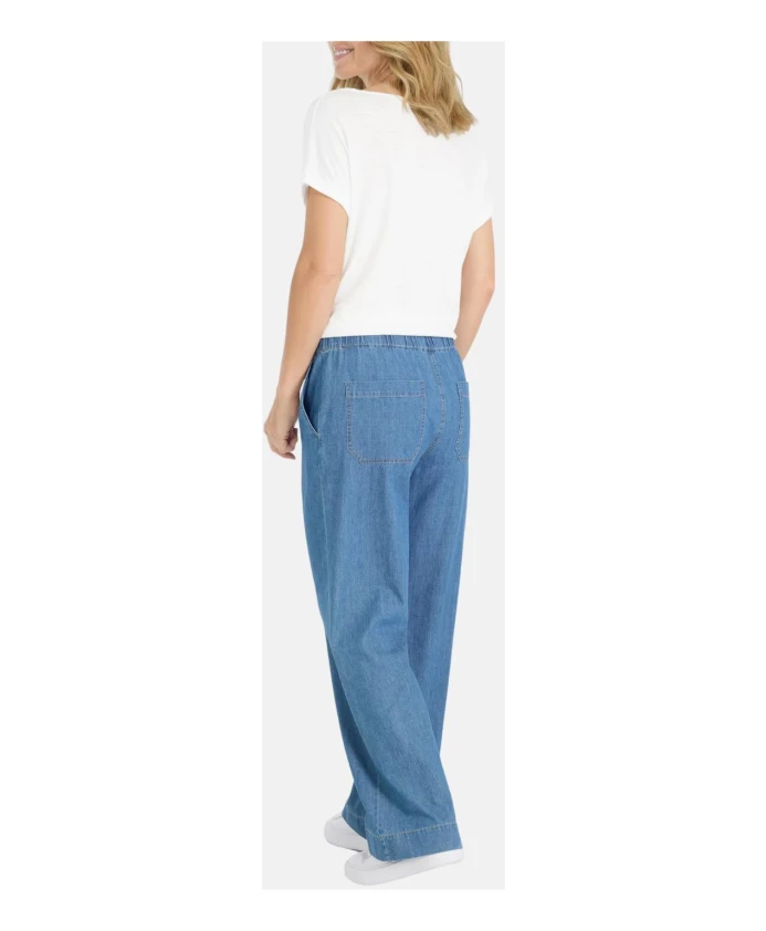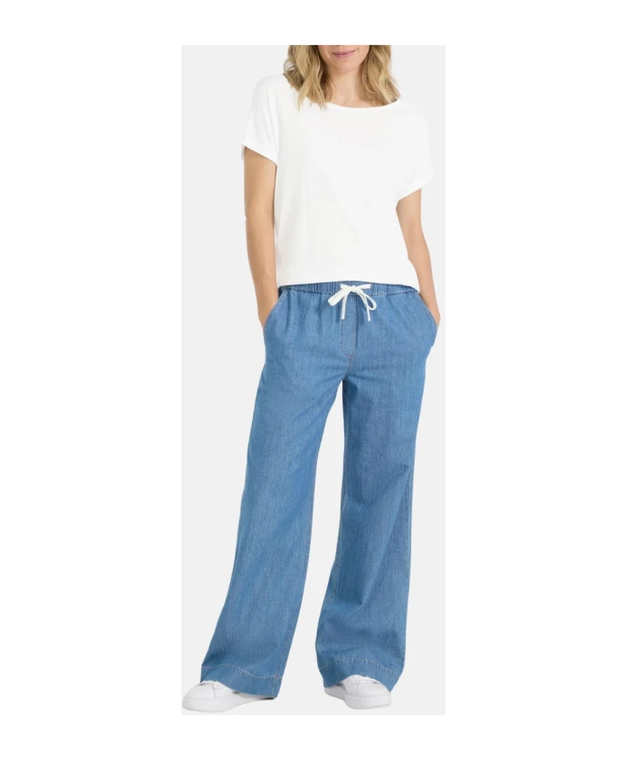 Джинсы Juvia Wide отличаются свободным силуэтом с широкими штанинами, эластичным поясом и контрастным регулируемым шнурком, а также боковыми и накладными задними карманами для комфорта на каждый день. Ключевые особенности: Синий | Эластичный пояс | Регулируемый контрастный шнурок | Боковые карманы | Накладные задние карманы | Широкий силуэт | Накладные задние карманы | Джинсовая отделка | Контрастные детали на поясе | Размеры и посадка: Широкий крой