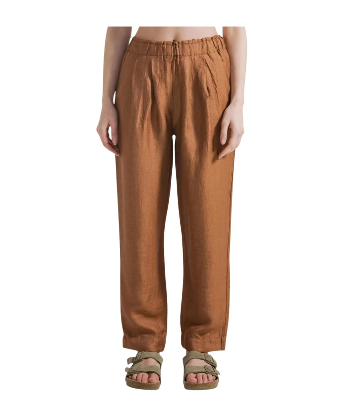 Прямые брюки DEHA из льняной смеси сочетают в себе легкую льняную ткань плотностью 120 г и детали с эффектом рюшей, создавая расслабленный, элегантный повседневный образ. Ключевые особенности: Коричневый | Бордовый | Льняная смесь | Легкая ткань (120 г) | Окрашены в готовом виде | Эластичный пояс | Складки спереди | Боковые карманы | Детали с эффектом рюшей | Прямой крой | Размеры и посадка: Стандартный крой | Состав и уход: 88% лен | 12% полиамид