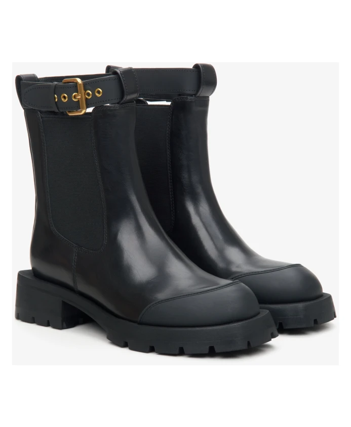 Добавьте элегантности своему стилю с помощью этих черных ботинок челси, изготовленных из натуральной кожи и украшенных декоративным ремешком. Изящный дизайн с фурнитурой золотистого цвета и массивным каблуком создает утонченный, но в то же время непринужденный образ, который идеально сочетается с вашей любимой курткой или пальто. Ключевые особенности: Черный | Натуральная кожа | Декоративный ремешок | Фурнитура золотистого цвета | Массивный каблук