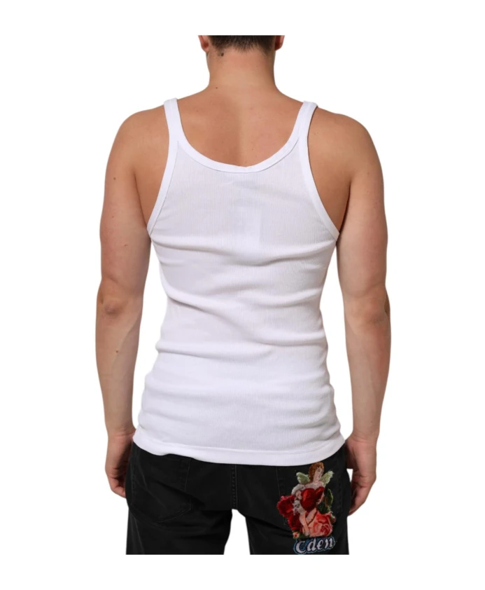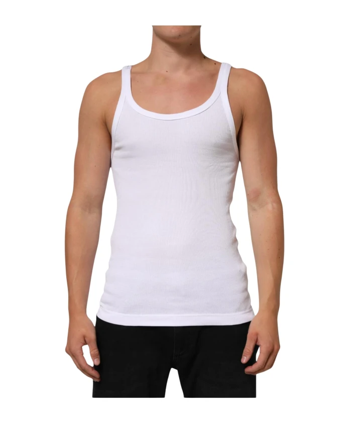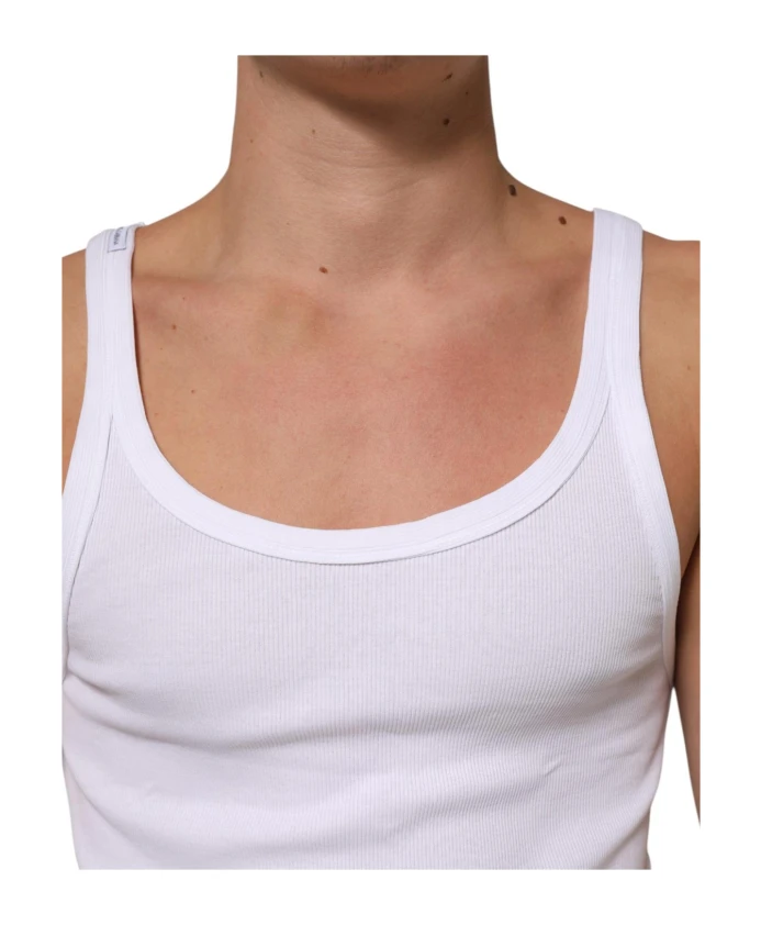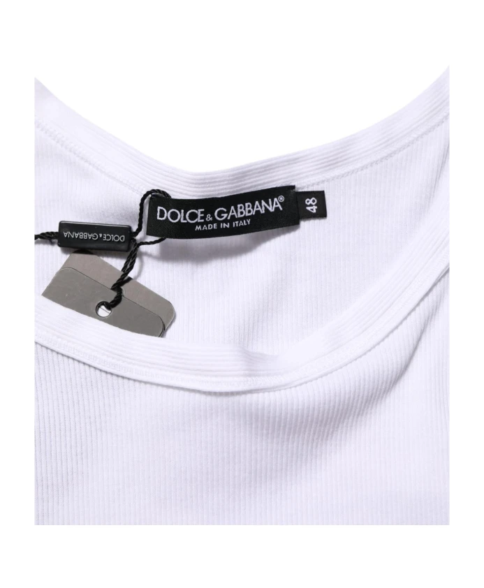 Обновите свой повседневный гардероб с помощью этой классической белой майки без рукавов с круглым вырезом от Dolce & Gabbana. Эта универсальная вещь, созданная для мужчин, сочетает в себе комфорт и стиль, что делает ее незаменимым дополнением к вашим повседневным образам. Круглый вырез и отсутствие рукавов создают расслабленный, но в то же время изысканный образ, идеально подходящий для многослойных образов или ношения как самостоятельной вещи.
