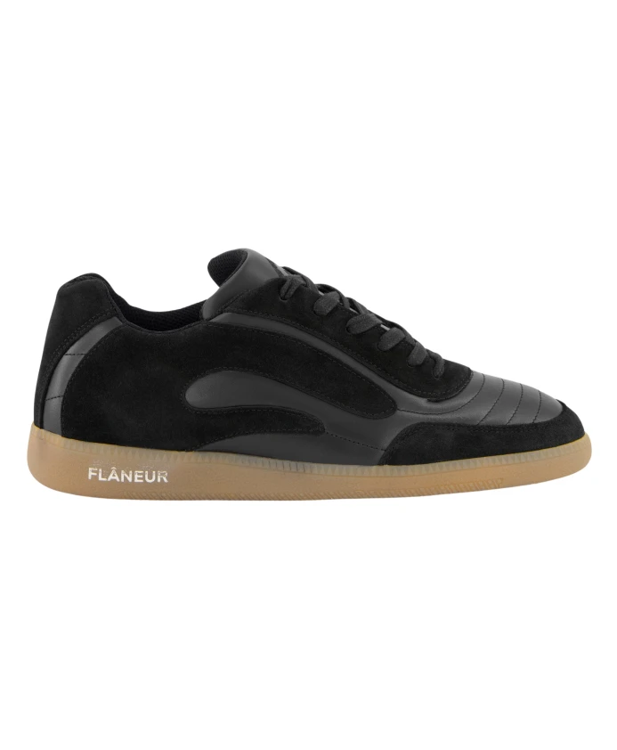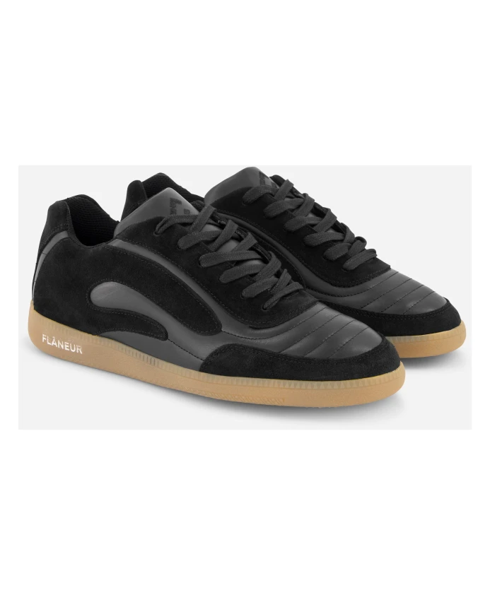 Подчеркните свой стиль с помощью черных кроссовок Tivoli Runner от FLÀNEUR. Эти кроссовки изготовлены из высококачественной телячьей кожи с футуристическим замшевым верхом, сочетая спортивный дизайн с вневременной элегантностью. Идеально подходят для прогулок по городу, но немного маломерят, поэтому рекомендуется заказывать на размер больше. Изготовленные в Италии из высококачественных материалов, эти кроссовки сочетают в себе стиль и комфорт.