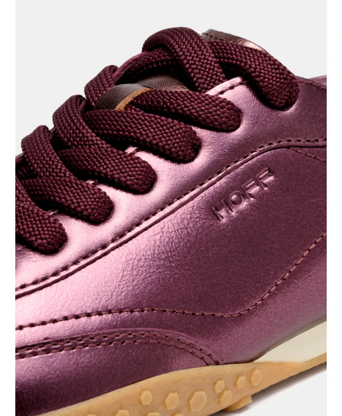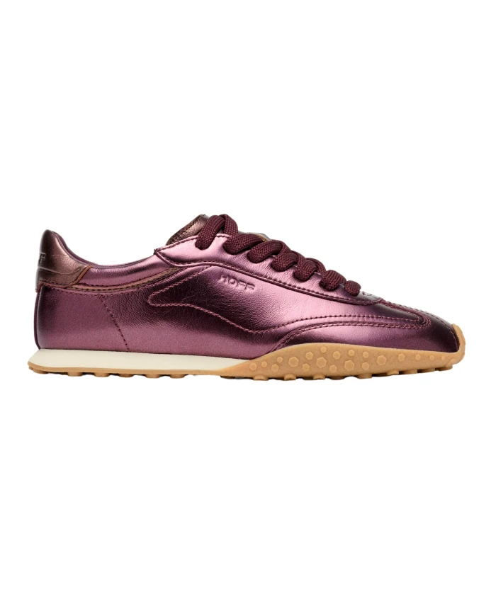 Кроссовки Hoff с монохромной металлической отделкой, созданные для повседневной носки. Они сочетают в себе элегантный металлический вид с текстурированной подошвой и шнурками в тон для дополнительной поддержки и лаконичного силуэта. Ключевые особенности: Красный | Гранатовый | Текстурированная подошва для лучшего сцепления | Шнуровка в тон | Монохромная металлическая отделка | Логотип на задней части | Размеры и посадка: Высота подошвы: 1,3 см
