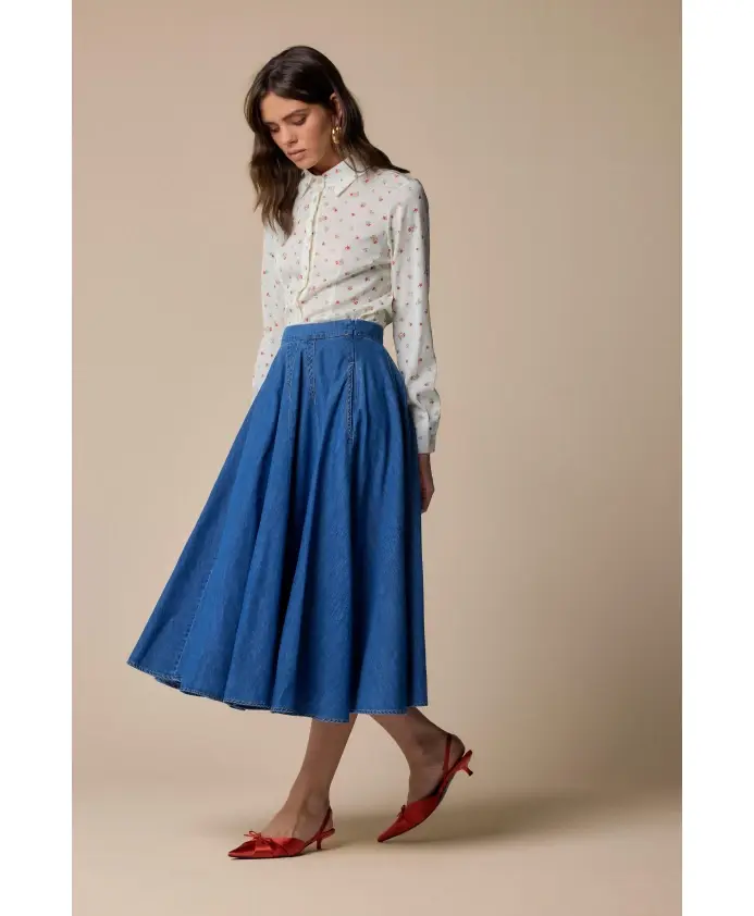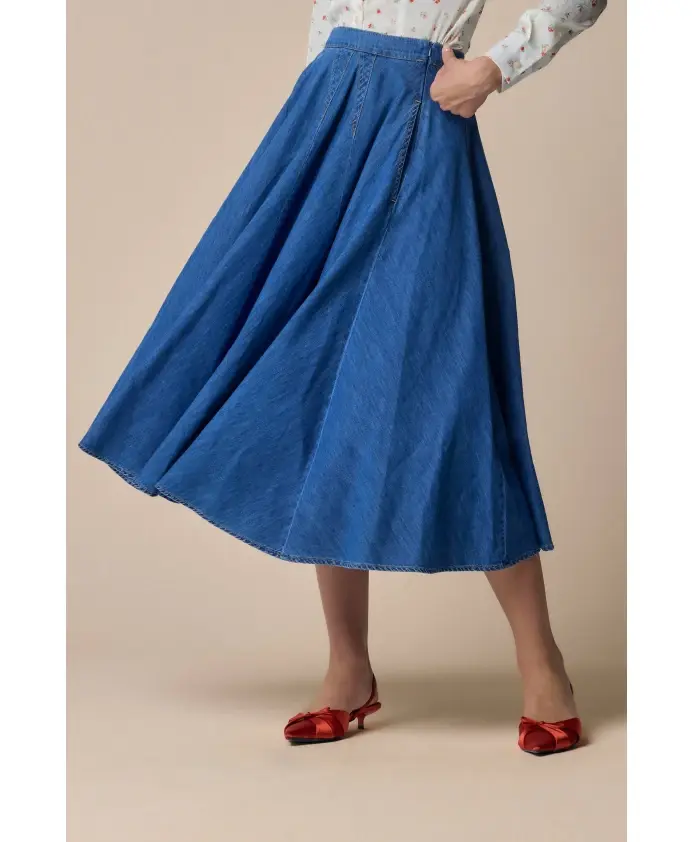 Откройте для себя стильную юбку-миди Kocca - универсальную вещь, идеально подходящую для любого гардероба. Изготовленная из высококачественного денима, эта юбка сочетает в себе стиль и комфорт на каждый день. Ключевые особенности: Светлый деним | Синий | Деним | Длина миди | Классический денимовый стиль | Посадка и размер: Стандартный крой | Состав и уход: 100% хлопок | Машинная стирка в холодной воде, сушка в барабане при низкой температуре.