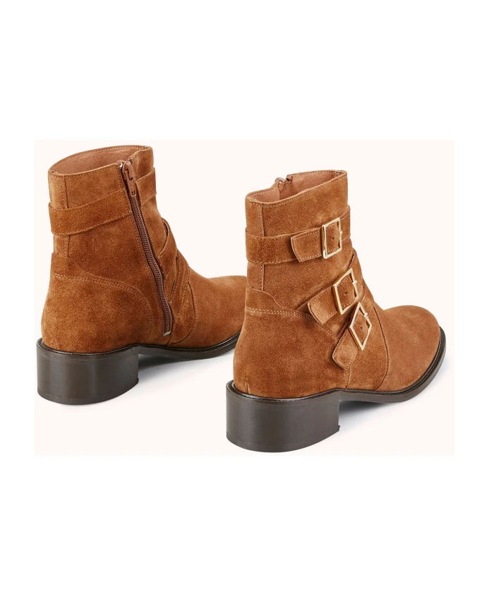 Подчеркните свой стиль с помощью ботильонов на каблуке La VILNA от Cosmoparis. Эти ботильоны имеют каблук высотой 3 см и украшены тремя ремешками и элегантными квадратными золотыми пряжками. Доступные в гладкой черной коже или замше коньячного цвета, эти женственные, но в то же время дерзкие ботильоны станут обязательным элементом вашего гардероба в этом сезоне. Изготовлены из кожи, сертифицированной Leather Working Group на «золотом» уровне.