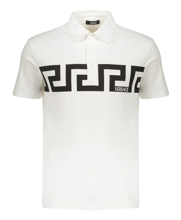 Хлопковая рубашка-поло с длинным принтом Versace, белый