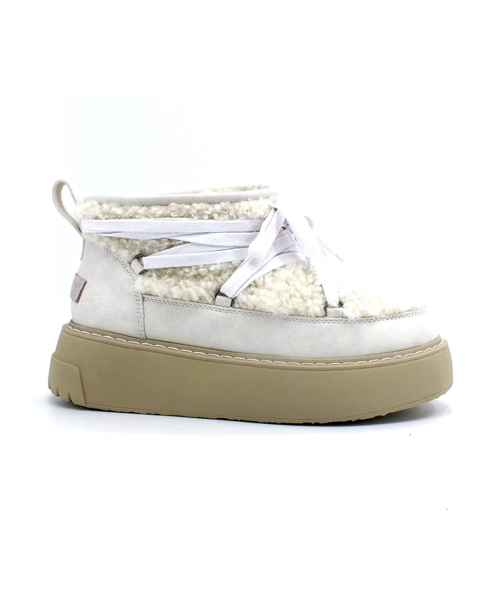 Зимние ботинки серии «California» выполнены из текстиля и резины, имеют резиновую подошву и платформу высотой 5 см. Силуэт ботинок до щиколотки разработан для осенне-зимнего сезона. Ключевые характеристики: Белый | Bianco | Ткань/Резина | Платформа (5 см) | Текстильная подкладка | Резиновая подошва | Силуэт ботинок до щиколотки | Размеры и посадка: Высота каблука: 5 см | Состав и уход: Верх: Ткань/Резина | Подкладка: Ткань | Подошва: Резина