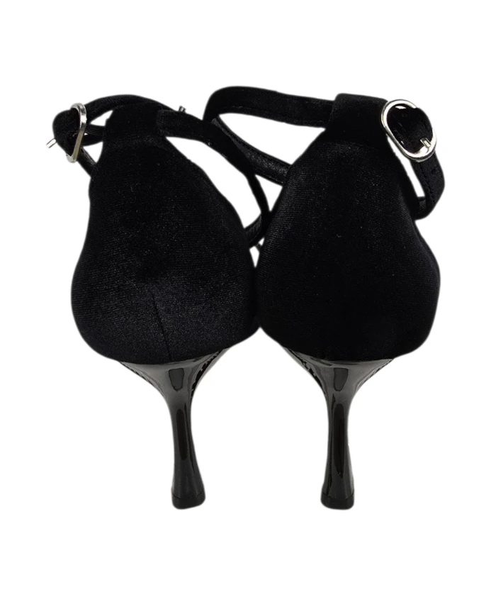 Эти туфли на каблуке от Twentyfour сочетают бархатный верх с украшениями из страз, создавая эффектный вечерний образ. Застежка на щиколотке и лакированный каблук обеспечивают надежную фиксацию и добавляют изысканности. Ключевые особенности: Черный | Бархат и кожа | Застежка на щиколотке | Украшения из страз | Бархатный верх | Лакированный каблук | Размеры и посадка: Высота каблука: 8,5 см | Состав и уход: Бархат | Стразы | Лакированная кожа