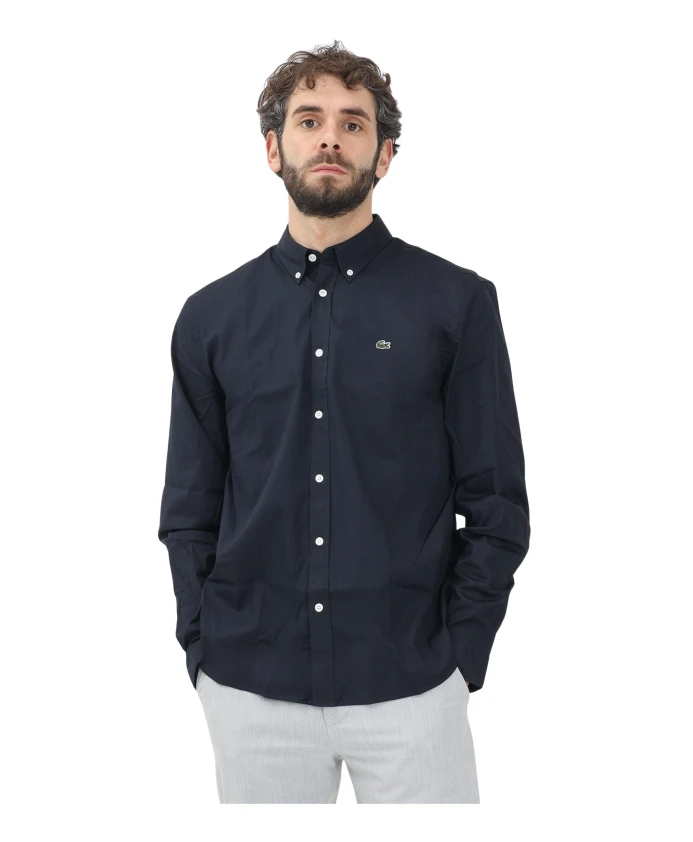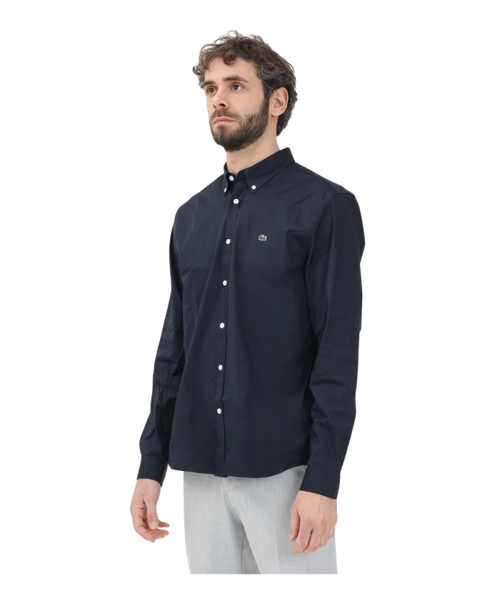 Синяя рубашка с длинными рукавами в элегантном стиле. Lacoste, синий