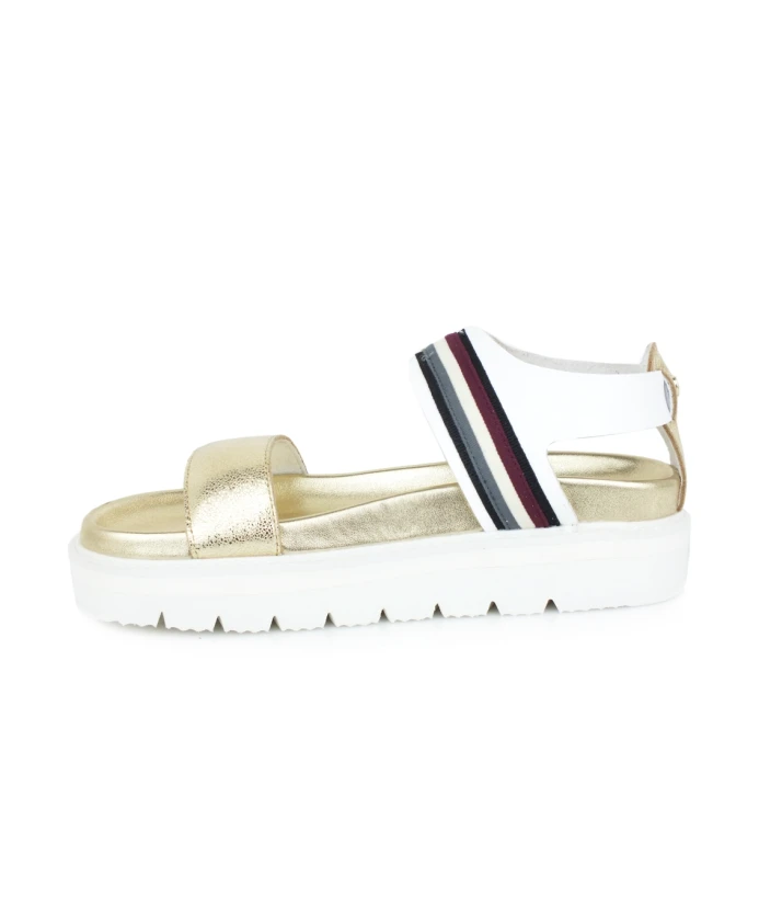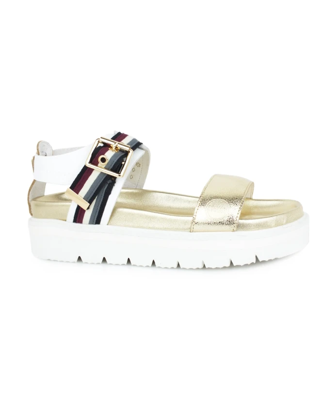 Сандалии Colmar Maggie 405 Flat сочетают в себе плоский, легкий силуэт с ламинированной отделкой в виде трещин и разноцветными акцентами. Созданные для теплой погоды, они застегиваются на ремешок для надежной фиксации. Ключевые особенности: Белый и золотой | Экопелле | Ремешок | Открытый носок | Ламинированная отделка в виде трещин | Разноцветный узор | Плоская подошва | Состав и уход: Верх: Экопелле | Подкладка: Экопелле | Подошва: Резина