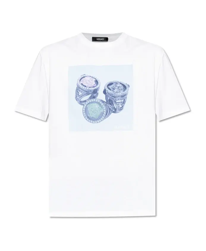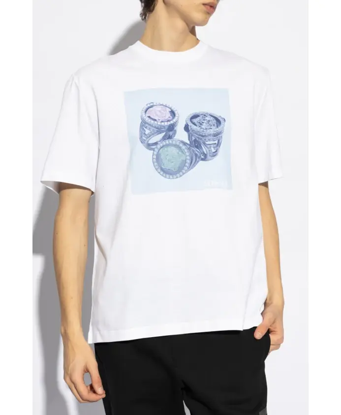Футболка с ярким принтом Versace, белый