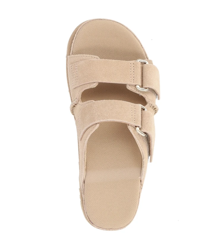 Ощутите комфорт и стиль с этими бежевыми женскими сандалиями UGG Goldensar Hi Sliders. Благодаря мягкому замшевому верху, регулируемым ремешкам и легкой подошве из материала EVA, эти сандалии идеально подходят для повседневной носки. Анатомическая стелька из EVA и обработка, предотвращающая появление запаха, сохранят ваши ноги свежими в течение всего дня. Завершает образ тисненый логотип на ремешке и нашивка с логотипом на задней части.
