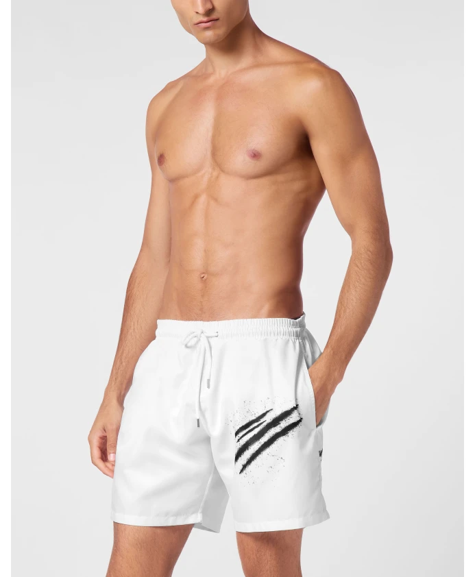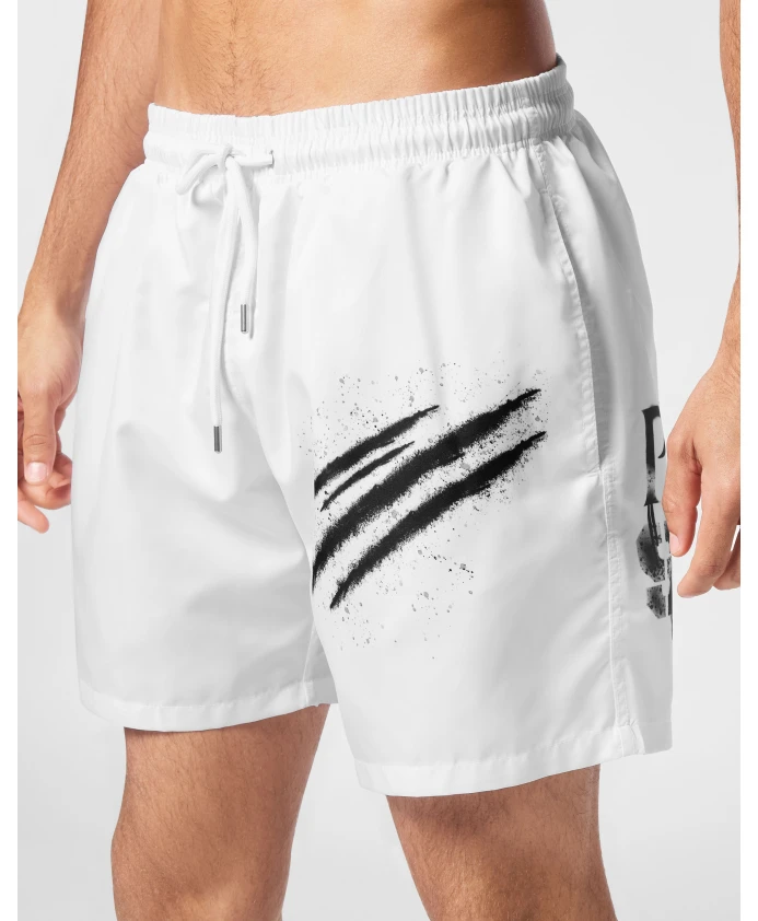 Боксерские шорты Plein Sport - это легкие плавательные шорты, созданные для отдыха, посещения бассейнов и спа-процедур. Они украшены культовыми принтами на штанинах и имеют удобный эластичный пояс со шнурком. Ключевые особенности: Белый | Черный | Полиэстер | Легкие | Подходят для бассейна и моря | Эластичный пояс со шнурком | Боковые карманы | Сетчатая подкладка | Культовый принт с символикой на штанинах | Состав и уход: 100% полиэстер