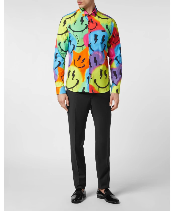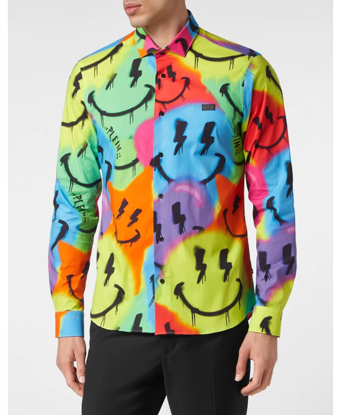 Рубашка, улыбка папочки, граффити Philipp Plein, мультиколор