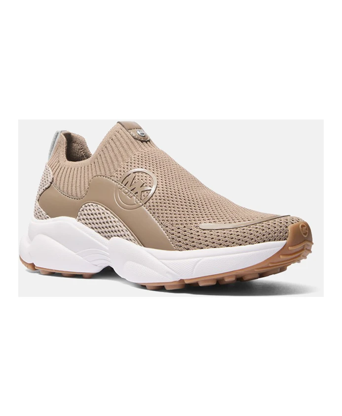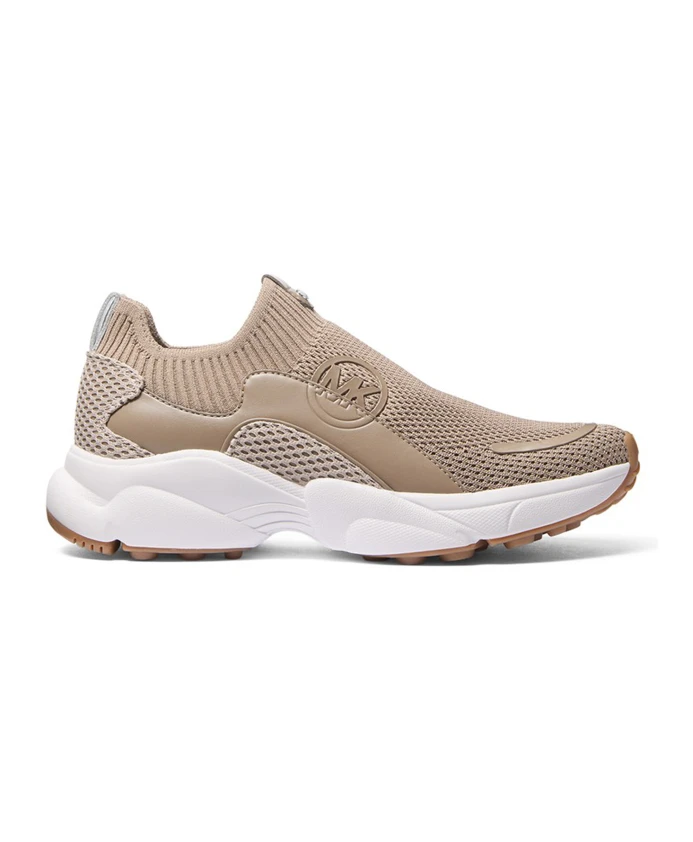 Кроссовки Michael Kors Sami сочетают в себе спортивный дизайн без шнурков с дышащей сеткой и кожаными деталями для комфортного ношения в движении. Модель: Sami - ID дизайнера 43T5SMFS3D115. Ключевые особенности: Бежевый | Полиэстер | Дышащая сетка | Амортизирующая резиновая подошва | Легко надеваются | Спортивный силуэт без шнурков | Гладкие кожаные детали | Напечатанный логотип | Состав и уход: 80% полиэстер | 16% нейлон | 4% эластан
