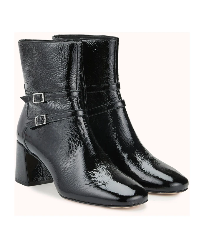 Представляем ботильоны BLANCA на каблуке от Cosmoparis, выполненные из элегантной черной лакированной кожи. Эти ботильоны имеют слегка расширяющийся, массивный каблук для комфорта в течение всего дня и два тонких серебряных ремешка с пряжками для эффектного образа. Ключевые особенности: Черный | Лакированная кожа | Слегка расширяющийся, массивный каблук | Два тонких серебряных ремешка с пряжками | Размер и посадка: Стандартная посадка