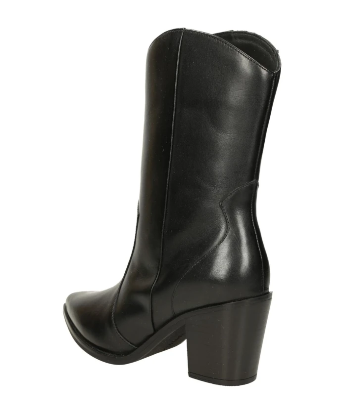 Откройте для себя кожаные ковбойские сапоги Unisa, созданные для тех, кто ценит стиль и комфорт. Благодаря широкому голенище и заостренному носку эти сапоги идеально подходят как для повседневной носки, так и для полуформальных случаев. Ключевые особенности: Черный | Кожа | Легкие | Гибкие | Нескользящая резиновая подошва | Широкое голенище | Заостренный носок | Широкий каблук, 7 см | Состав и уход: Верх: 100% кожа | Подошва: Резина