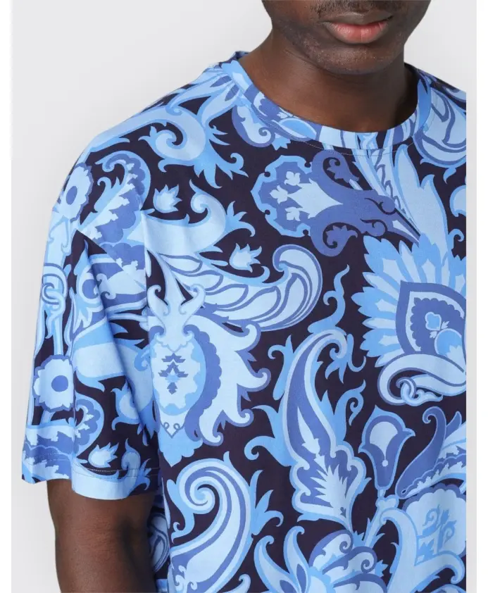 Футболка Etro Soho - стильное дополнение к любому гардеробу, отличающееся модным многоцветным дизайном, который непременно привлечет внимание. Идеальная для отдыха, эта футболка сочетает в себе комфорт и модный стиль. Ключевые особенности: Многоцветная | Хлопок | Круглый вырез | Принт «пейсли» | Размер и посадка: Стандартный крой | Состав и уход: 100% хлопок | Машинная стирка в холодной воде, сушка в барабане при низкой температуре