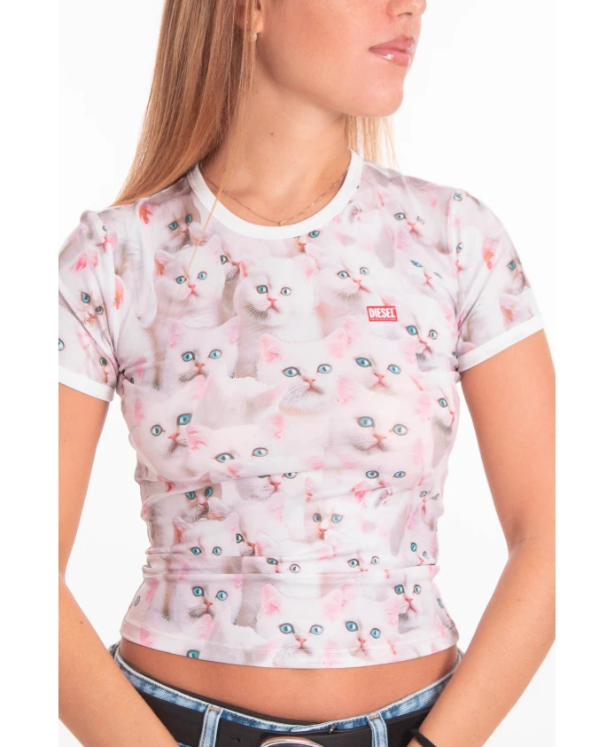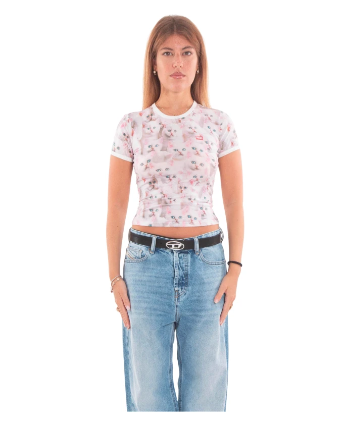 Футболка Diesel T-Unclau Jersey Top с игривым принтом в виде кошек на трикотажной основе создана для повседневного расслабленного образа. Она имеет круглый вырез и короткие рукава. Ключевые особенности: Разноцветная | Белый | Полиэстер | Эластичная ткань | Ребристая отделка воротника и манжет | Фирменная этикетка на груди | Прямой низ | Круглый вырез | Короткие рукава | Принт в виде кошек | Состав и уход: 94% полиэстер | 6% эластан