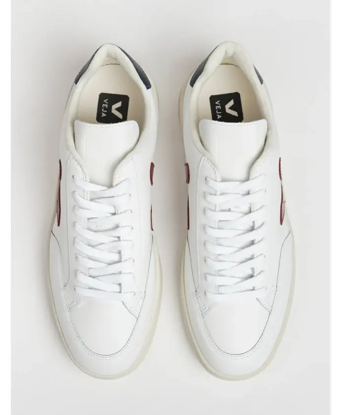 Поднимите свой стиль на новый уровень с этими белыми низкими кроссовками Veja 'V-12' для мужчин. Изготовленные из кожи, они имеют контрастную темно-синюю заднюю часть с белым логотипом, красный логотип V цвета марсала сбоку, резиновую подошву, шнуровку с хлопковыми шнурками и круглый носок. Верх и стельки выполнены из кожи, а логотип V, стелька, подошва, подкладка и шнурки изготовлены из смесового материала для прочности и стиля.
