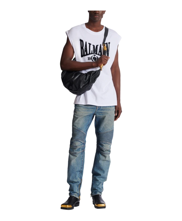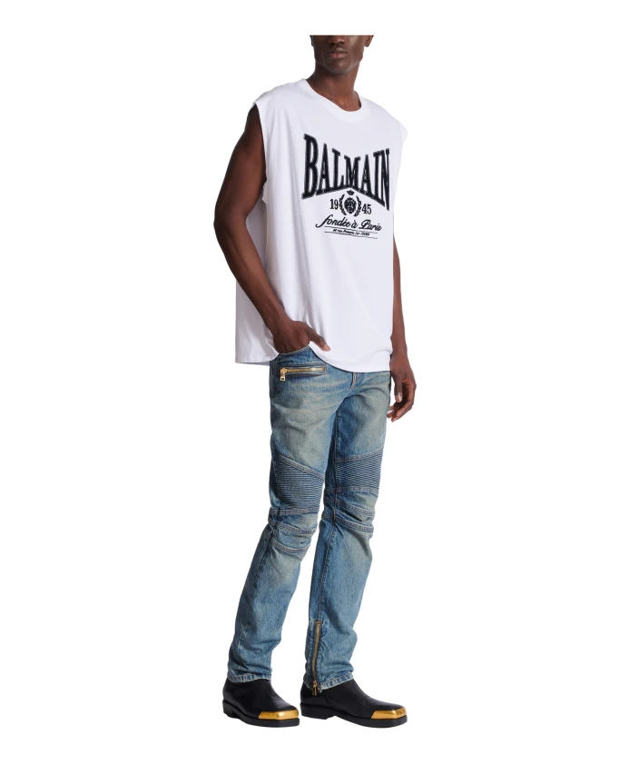 Повседневная майка Balmain с принтом - это свободная майка без рукавов с принтом Balmain 1945 на передней части. Изготовленная из хлопкового трикотажа, она подходит для многослойной одежды и повседневной носки. Ключевые особенности: Белый | Хлопок | Круглый вырез | Без рукавов | Принт Balmain 1945 на передней части | Хлопковый трикотаж | Размеры и посадка: Свободный крой | Рост модели 190 см, размер M | Состав и уход: 100% хлопок
