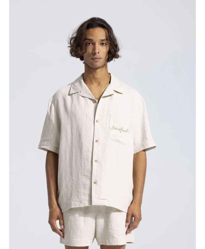 Рубашка Bram's Fruit Garden Hose из высококачественного льна - это свободная рубашка с короткими рукавами и застежкой на пуговицы. Она идеально подходит для ношения в теплую погоду и для создания многослойных образов. Основные характеристики: Бежевый цвет | Лен | Застежка на пуговицы | Короткие рукава | Вышитый логотип Bram's Fruit на груди | Нагрудный карман | Размеры и посадка: Свободный крой | Состав материала и уход: 100% лен