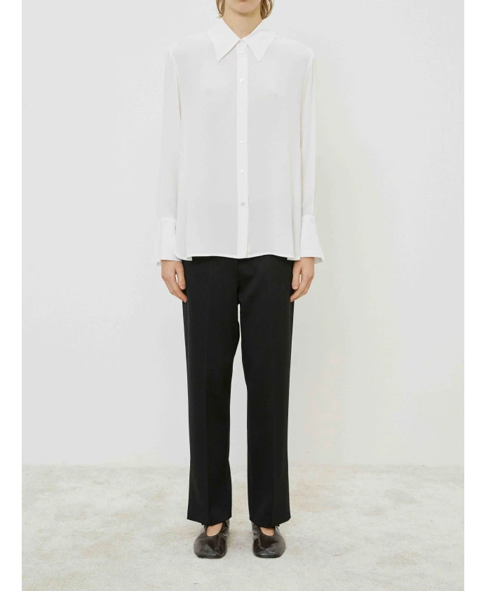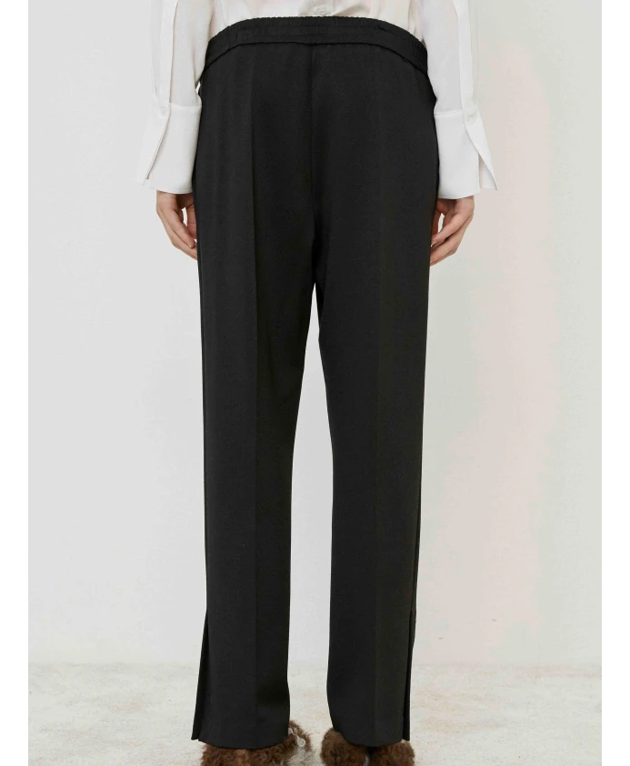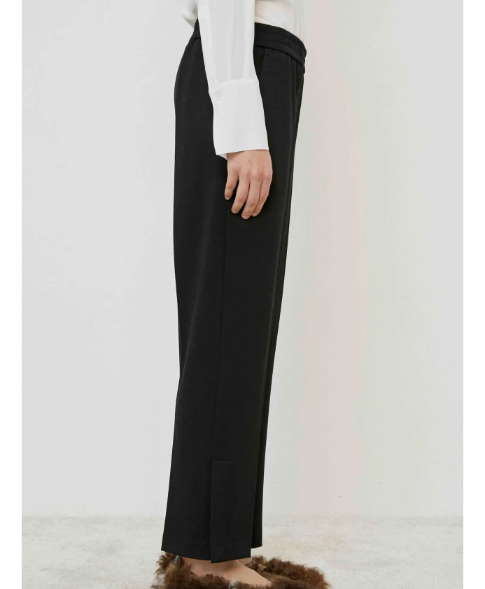 Брюки MeiMeiJ из эластичной вискозы сочетают в себе высокую талию, эластичный пояс и боковые разрезы, создавая стильный и удобный повседневный образ. Ключевые особенности: Черный | Вискоза | Эластичная ткань | Эластичный пояс | Боковые разрезы | Передние карманы | Прямой крой | Чистый, минималистичный силуэт | Размеры и посадка: Высокая талия | Стандартный крой | Прямой крой | Состав и уход: 65% вискоза, 30% полиамид, 5% эластан