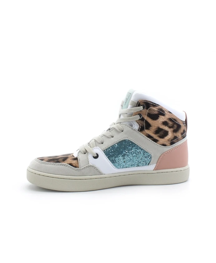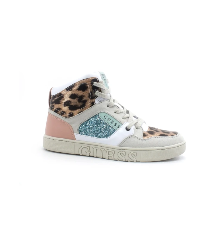 Кроссовки Guess с многоцветным кожаным и тканевым верхом, украшенные блестками и анималистичными деталями, создают эффектный весенне-летний образ. Шнуровка и круглый носок обеспечивают комфорт на каждый день и стильный внешний вид. Ключевые особенности: Многоцветные | Белые | Кожа | Ткань | Шнуровка | Круглый носок | Блестки | Анималистичный принт | Высокие | Состав и уход: Верх: Кожа, Ткань | Подкладка: Ткань | Подошва: Резина