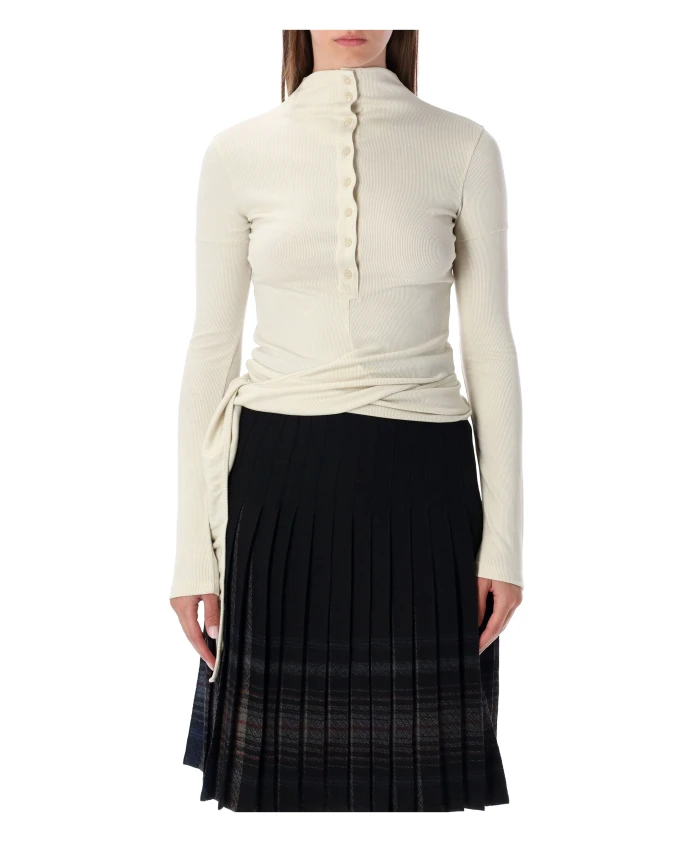 Обновите свой гардероб с помощью этой минималистичной, но современной блузки с длинными рукавами от LOW CLASSIC. Изготовленная из эластичной ткани для облегающего силуэта, она имеет уникальный дизайн выреза горловины с пуговицами и современные детали на плечах. Обхватывающие бретели добавляют изысканности, делая ее универсальным выбором как для повседневных, так и для нарядных образов. Алессандра ростом 1,75 м и носит размер S.