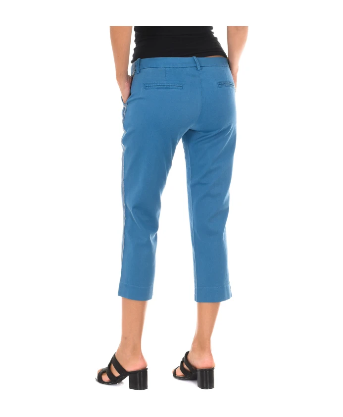 Укороченные брюки MET для женщин. Брюки в пиратском стиле с петлями для ремня, застежкой на пуговицу и молнию спереди, двумя передними карманами, двумя декоративными задними карманами, прямым низом, видимыми швами в тон. Состав: 60% хлопок, 37% лиоцелл, 3% эластан. Инструкции по уходу: машинная стирка при температуре до 40°C, глажка при средней температуре до 110°C, сушка в сушильной машине, не отбеливать, химчистка запрещена.