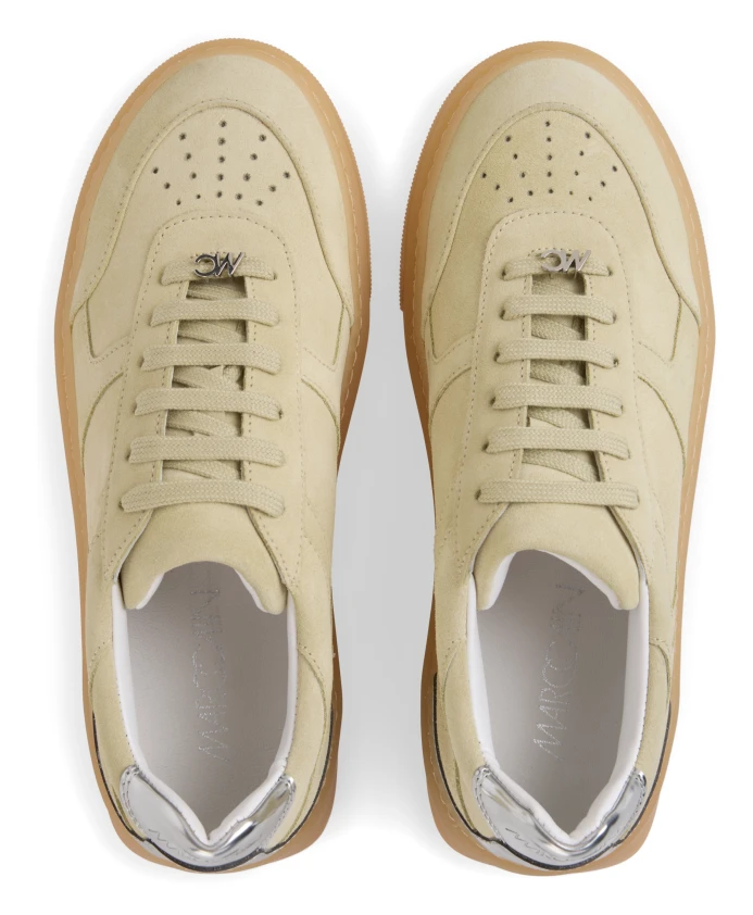 Замшевые кроссовки Marc Cain из телячьей замши в тон сочетают в себе массивную подошву и блестящий акцент, создавая эффектный, но при этом подходящий для офиса образ. Мягкая подкладка и шнуровка обеспечивают комфорт на каждый день. Ключевые особенности: Бежевый | Цвет: бежевый | Телячья замша | Шнуровка | Мягкая, удобная подкладка | Круглый носок | Блестящий акцент | Массивная подошва | Размер и посадка: Высота каблука: 35 мм