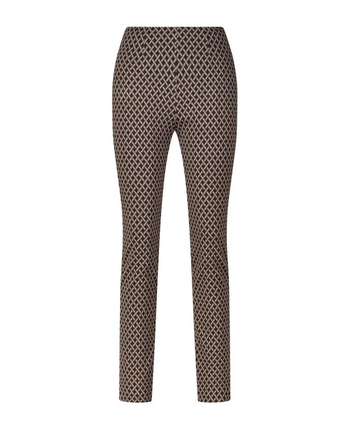 Брюки Raffaello Rossi зауженного кроя сочетают в себе облегающий, эластичный крой и эффектный геометрический узор, создавая современный и элегантный образ. Идеально подходят как для торжественных, так и для повседневных случаев, обеспечивая сбалансированное сочетание комфорта и современного стиля. Ключевые особенности: Коричневый | Эластичная ткань | Геометрический узор | Размеры и посадка: Зауженный крой | Облегающий силуэт