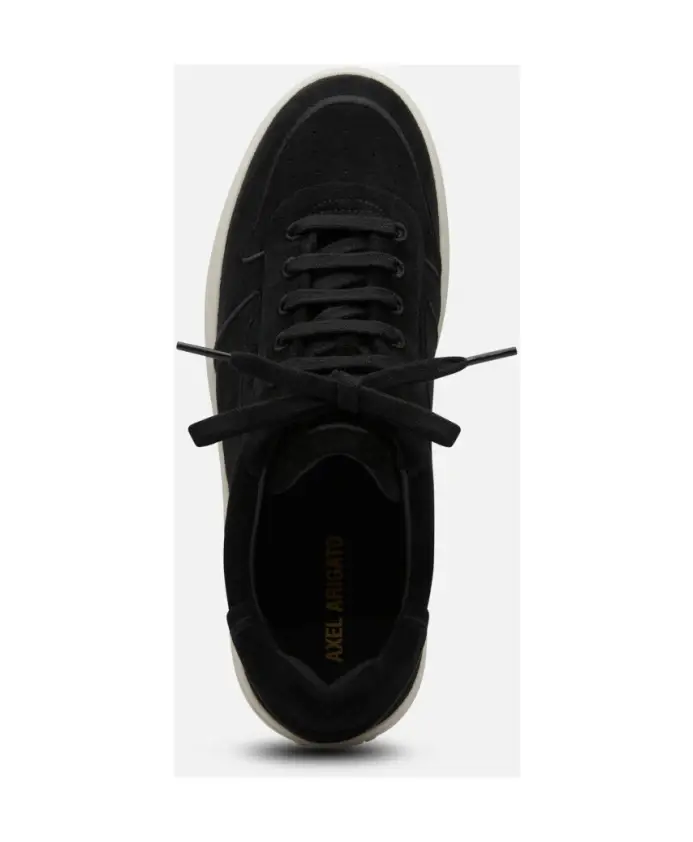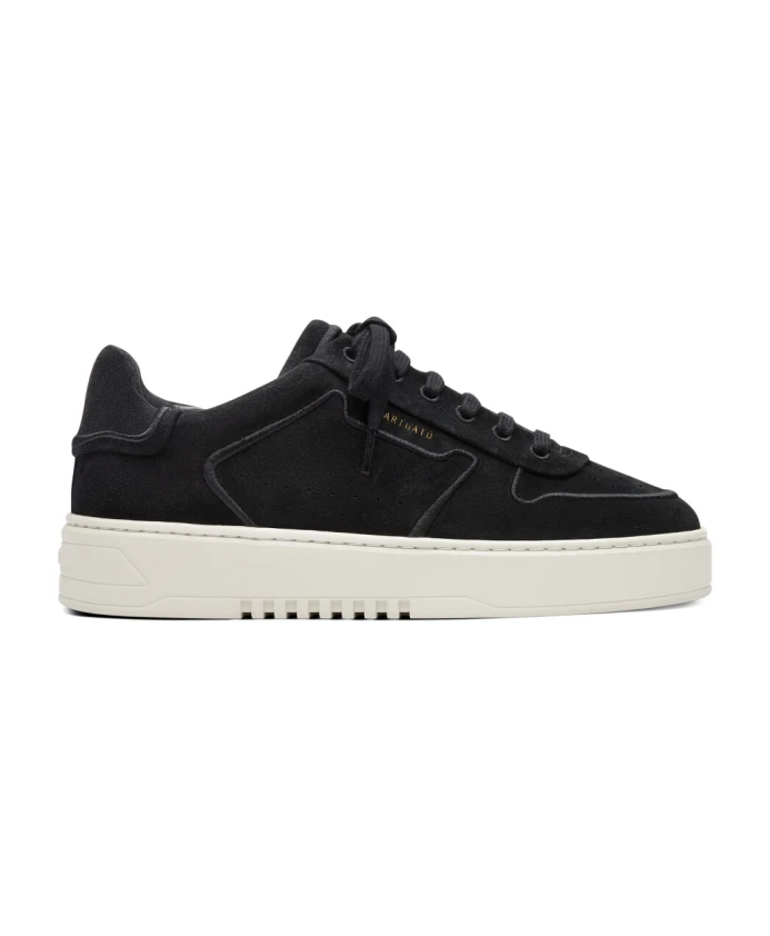 Подчеркните свой стиль с помощью этих черных низких кроссовок Axel Arigato 'Orbit Embroidery'. Изготовленные вручную из замши с контрастной отделкой нитками, эти кроссовки имеют подкладку из полиэстера, микрофибры и кожи, а также частично резиновую подошву на платформе. Перфорированный круглый носок, шнуровка на плоских хлопковых шнурках и металлический золотистый логотип сбоку добавляют изысканности. Высота подошвы: 3,5 см.