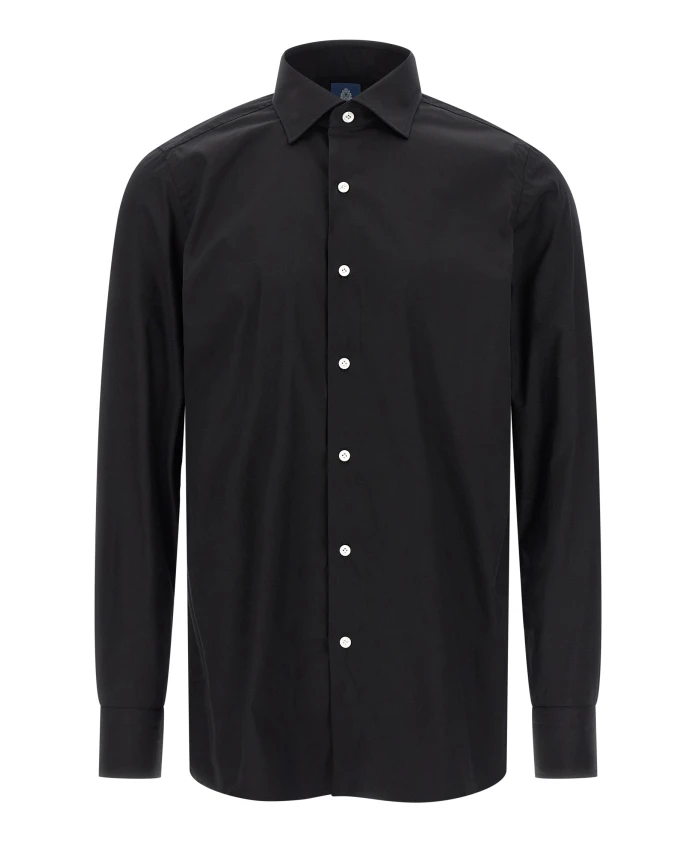 Рубашка Finamore Napoli сочетает в себе неаполитанский крой и непринужденный стиль. Благодаря едва заметному контрастному атласному логотипу на боковых разрезах, это изысканная вещь на каждый день. Ключевые особенности: Черный | Хлопок | Застежка на пуговицы | Длинные рукава с манжетами | Контрастный атласный логотип на боковых разрезах | Боковые разрезы | Размеры и посадка: Стандартный крой | Состав материала и уход: Хлопок