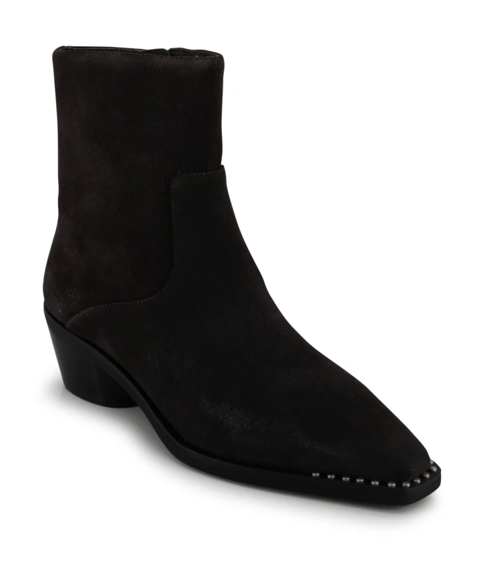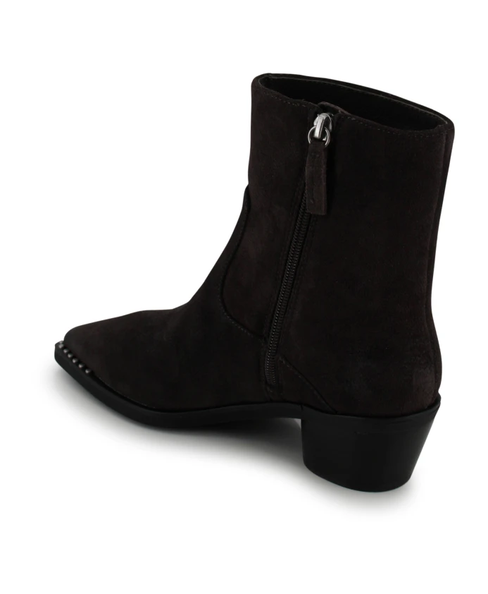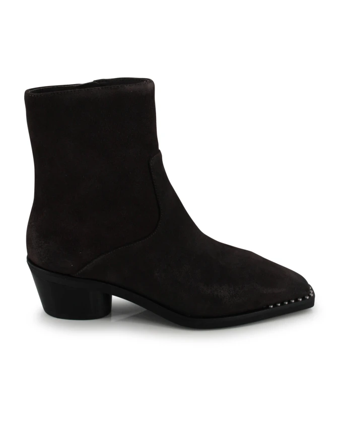 Подчеркните свой городской стиль с помощью этих ковбойских сапог ASH. Изготовленные из 100% кожи, эти замшевые ботильоны представляют собой современную интерпретацию классического техасского дизайна. Заостренный носок украшен микроскопическими металлическими заклепками, а удобная боковая застежка-молния и низкий блочный каблук обеспечивают стиль и комфорт. Завершает образ нескользящая резиновая подошва. Высота каблука: 4 см.