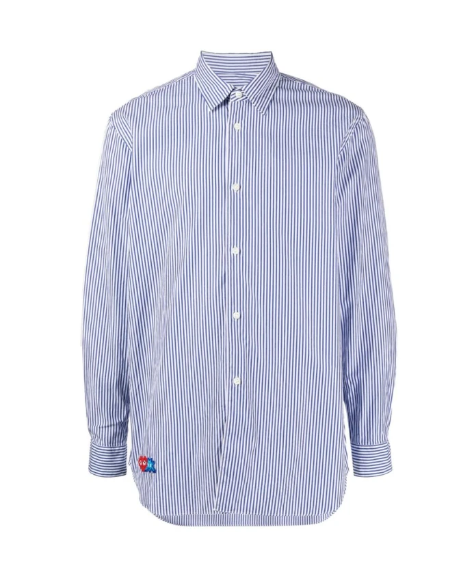 Обновите свой повседневный гардероб этой стильной сине-белой хлопковой рубашкой от Comme des Garçons Play. Рубашка с вертикальными полосами и нашивкой с пиксельным логотипом на передней части идеально подойдет для придания изысканности вашему повседневному образу. Основные характеристики: Белый | Синий | Хлопок | Классический воротник | Застежка на пуговицы спереди | Длинные рукава с манжетами на пуговицах | Закругленный низ