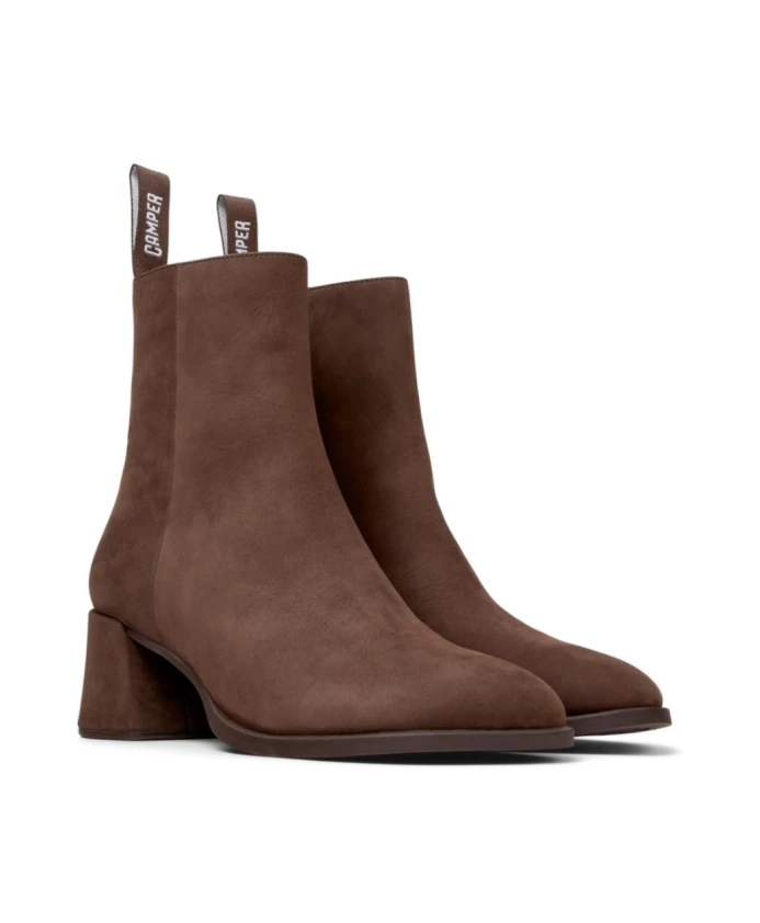Ботильоны Camper на каблуке, созданные для повседневной носки. Оснащены мягкой стелькой OrthoLite и боковой застежкой-молнией для удобства надевания и снимания. Ключевые особенности: Коричневый | Бордовый | Нубук | Мягкая стелька OrthoLite | Боковая застежка-молния | Петля сзади с логотипом Camper | Резиновая и ABS подошва | Силуэт ботильонов | Каблук 6,5 см | Размеры и посадка: Высота каблука: 6,5 см | Состав и уход: Нубук