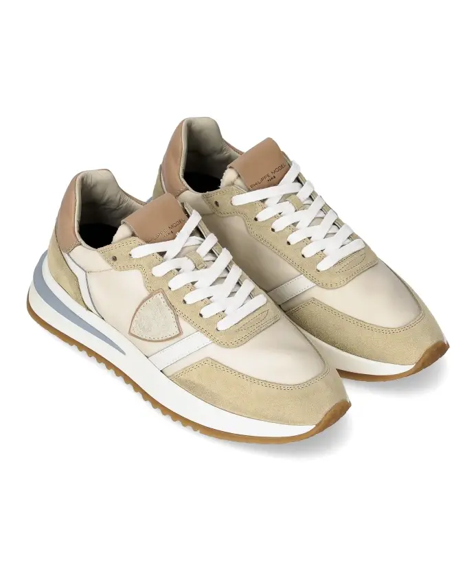 Кроссовки Tropez 2.1 от Филиппа Моделя сочетают спортивный дизайн с городским стилем. Они выполнены из глянцевой телячьей кожи, технической ткани и контрастной замши. Ключевые особенности: Бежевый | Разноцветный | Глянцевая телячья кожа | Съемная стелька | Контрастная замша | Размер и посадка: Легкие и гибкие | Состав и уход: Подкладка из махровой хлопчатобумажной ткани | Кожаная подкладка | Микропористая резиновая подошва