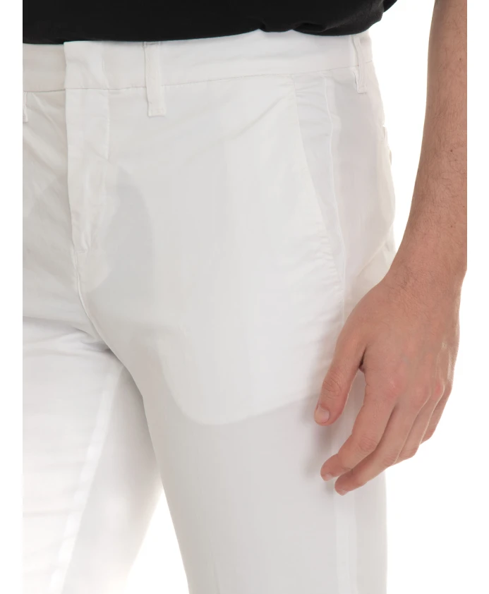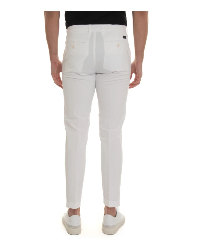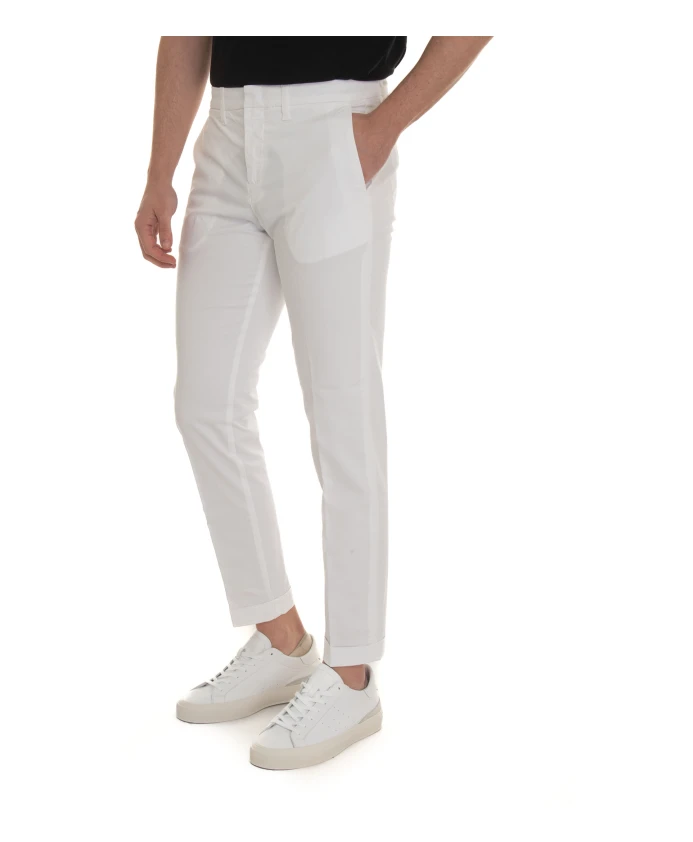 Брюки-чиносы Fay имеют зауженный, приталенный силуэт с подвернутым низом и ненавязчивым логотипом на кармане - идеально подходят для повседневных образов в стиле smart-casual. Ключевые особенности: Белый | Хлопок | Эластичная ткань | Застежка на пуговицу и потайную молнию | Логотип на правом кармане | Подвернутый низ | Размеры и посадка: Ширина штанины внизу: 16 см | Зауженный крой | Материал и уход: 97% хлопок, 3% эластан