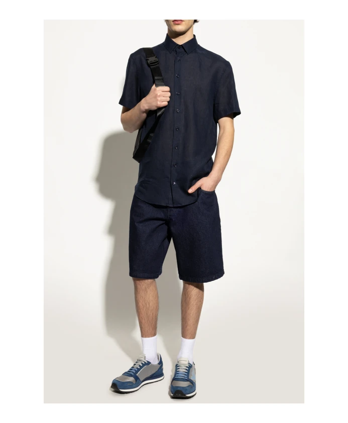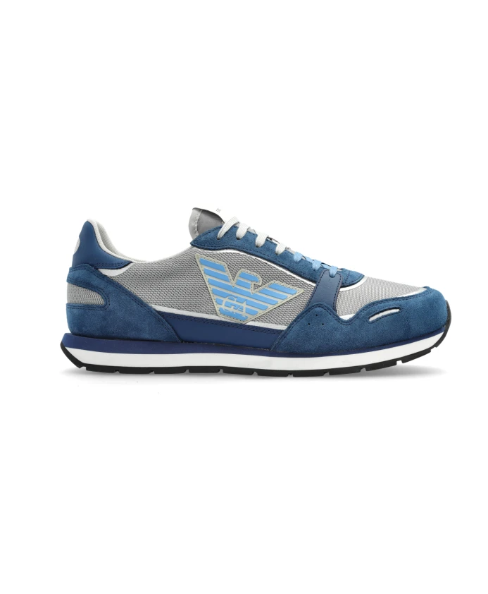 Представляем кроссовки Emporio Armani с логотипом, воплощающие элегантность и функциональность. Эти низкопрофильные кроссовки темно-синего и серого цвета органично сочетают современный дизайн с классическими элементами. Ключевые особенности: темно-синий | серый | замша | сетка | воздухопроницаемый материал | стилизованный логотип сбоку | белая контрастная подошва с темно-синей вставкой | Размер и посадка: идеальная посадка