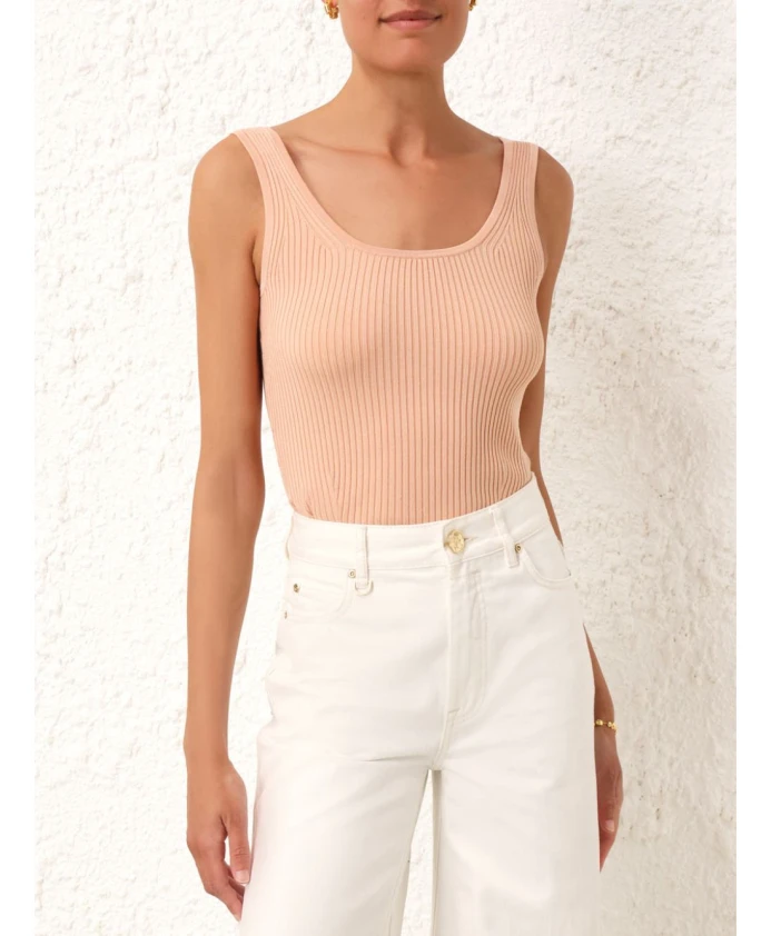 Обновите свой гардероб с помощью этой розовой майки Zimmermann из ребристого трикотажа с вырезом-лодочкой. Приталенный крой подчеркивает силуэт, а вырез-лодочка добавляет вневременной элегантности. Изготовленная из ребристого трикотажа, состоящего из 74% вискозы, 24% полиамида и 2% эластана, эта майка идеально сочетает в себе комфорт и стиль. Универсальная и незаменимая вещь для любого образа. Рекомендуется ручная стирка.
