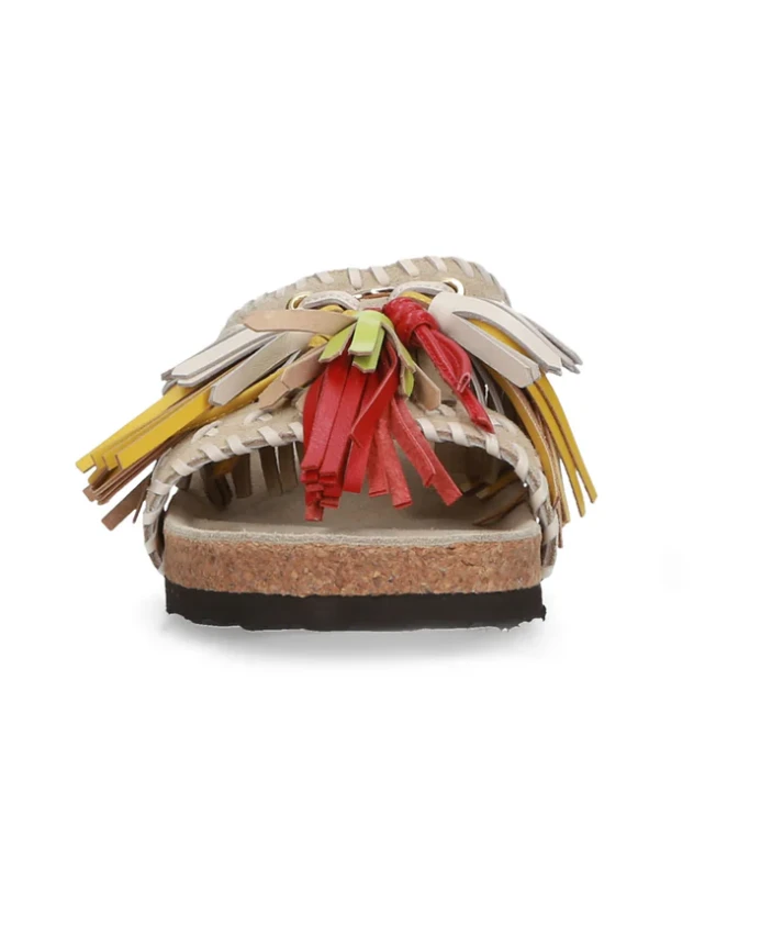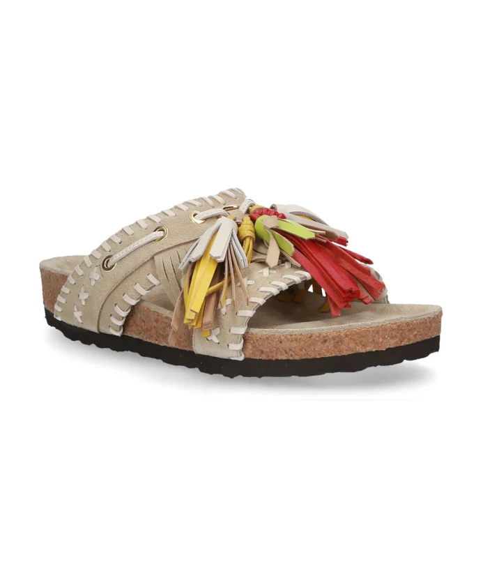 Добавьте изюминку в свой летний образ с этими шикарными бежевыми сандалиями с бахромой. Они украшены яркой желтой и красной бахромой с кремовой строчкой. Эти замшевые сандалии, разработанные Еленой Ячи, сочетают в себе комфорт и стиль, что делает их идеальными для повседневных прогулок. Ключевые особенности: Бежевый | Желтый | Красный | Замша | Детали с бахромой | Кремовая строчка | Размер и посадка: Стандартная посадка