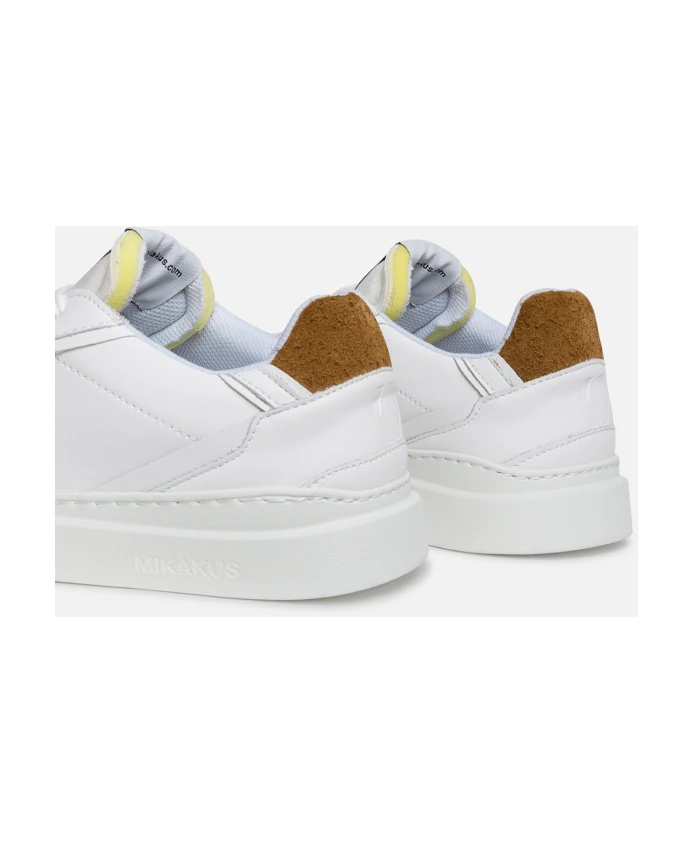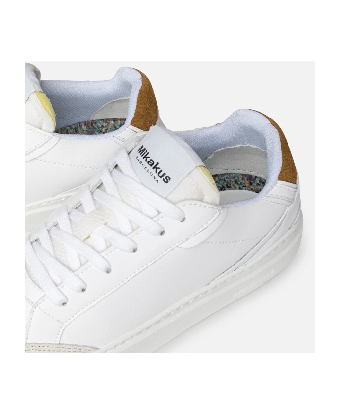 Классическая и культовая модель Krona от Mikakus Barcelona возвращается в этом сезоне в варианте Krona Pure White. Изготовленные из высококачественной белой кожи и серой ткани, они украшены вставками из замши песочного цвета на пятке, контрастирующими с фирменным цветом сезона. Модель имеет резиновую подошву типа «чашечка» и стельку из переработанных материалов, сочетая комфорт и стиль, создавая вневременные кроссовки.